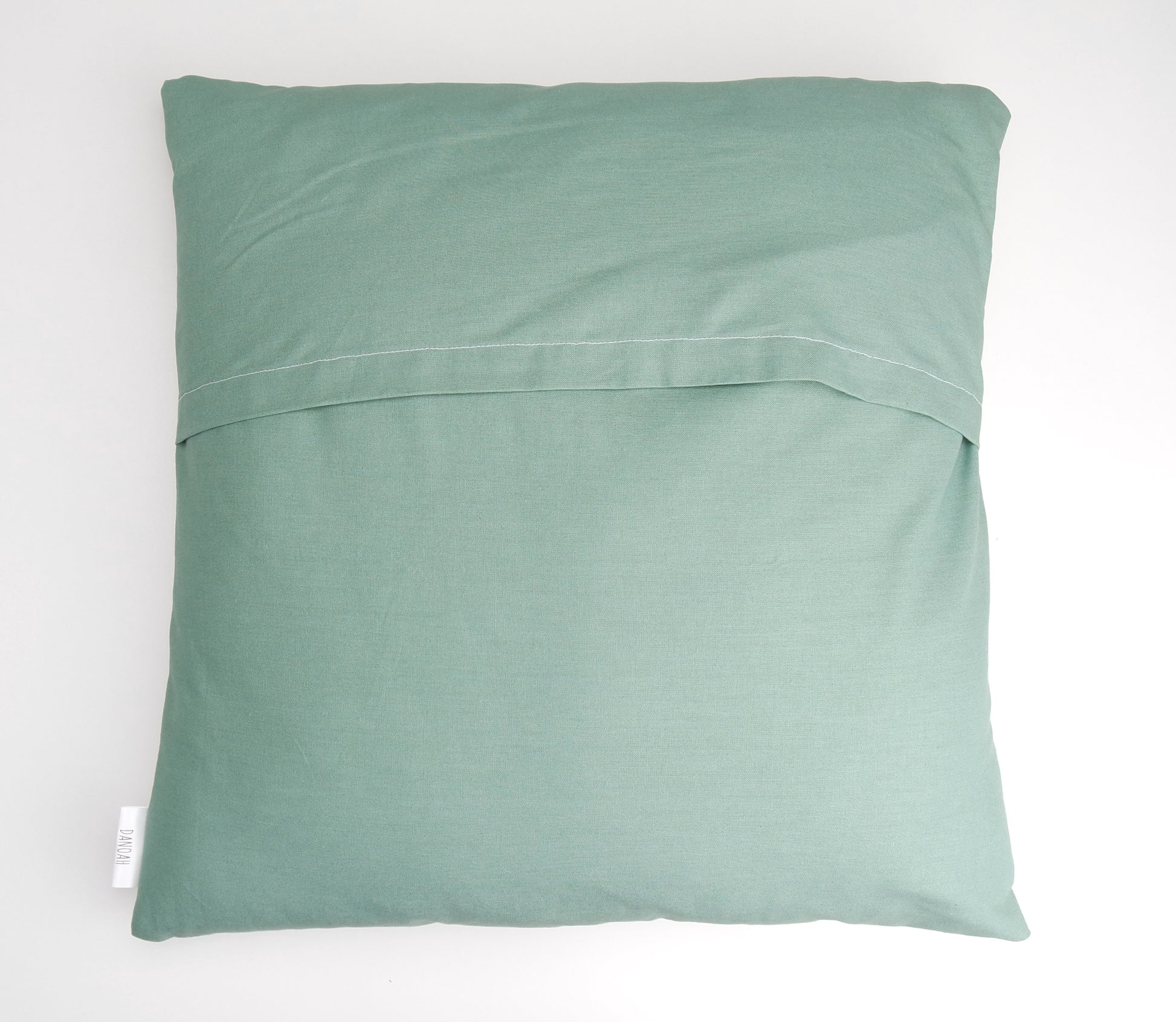 It is a standard 16" square cover and has an envelope closure on the back to ensure there are no loose fittings that will fall off.