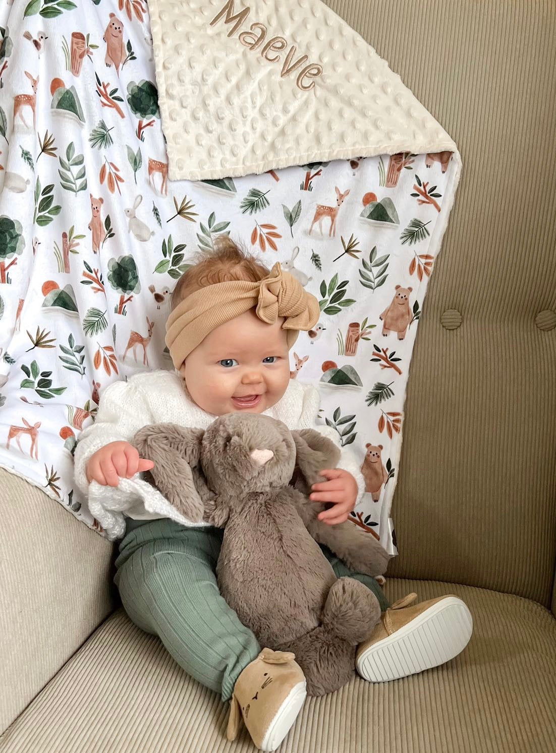 Embroidered Personalised Minky Dot Blanket - "Forest Friends"