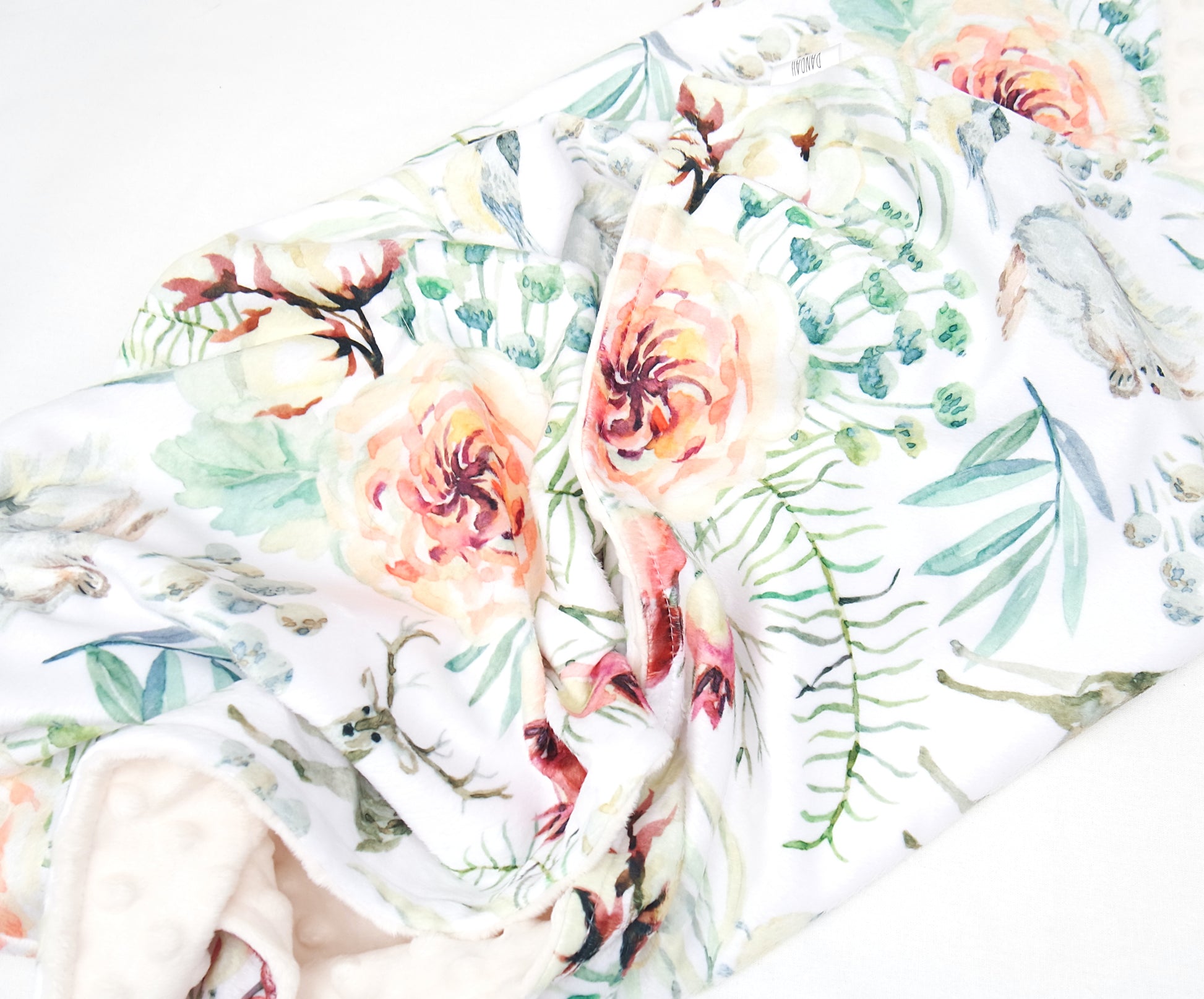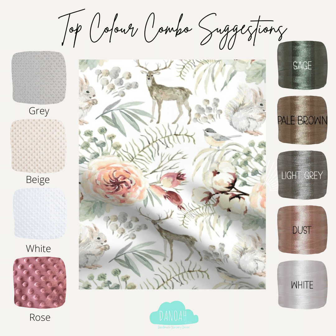 Embroidered Personalised Minky Dot Blanket - "Forest Woodland Animals"