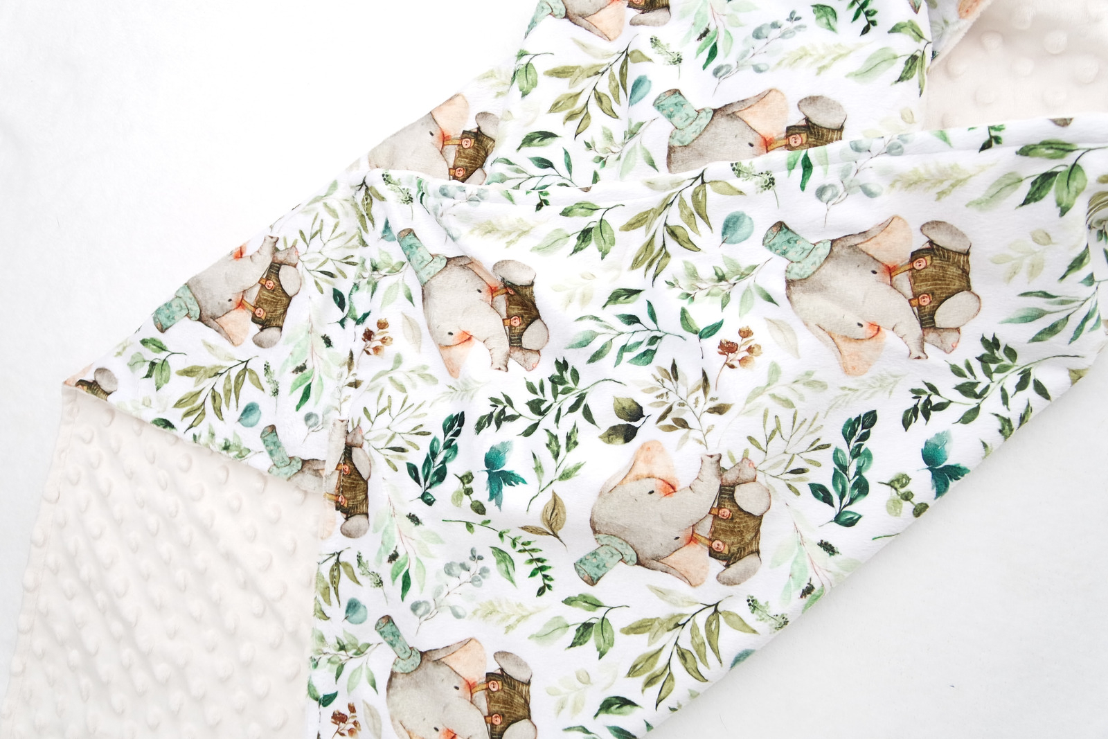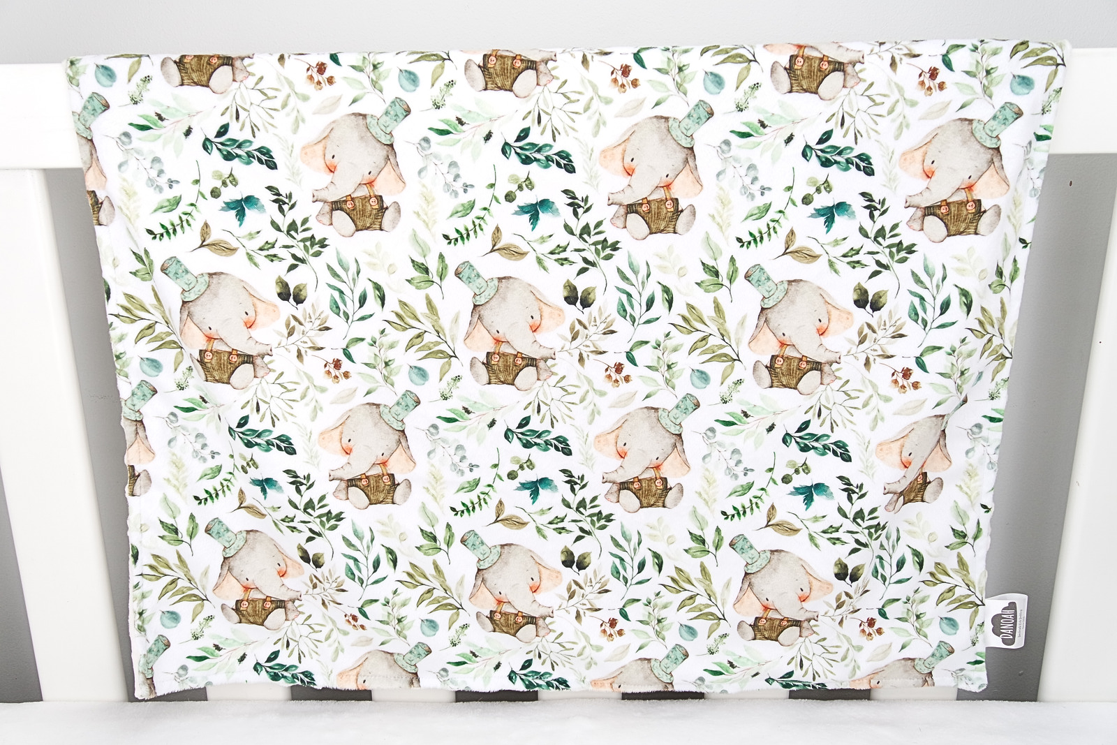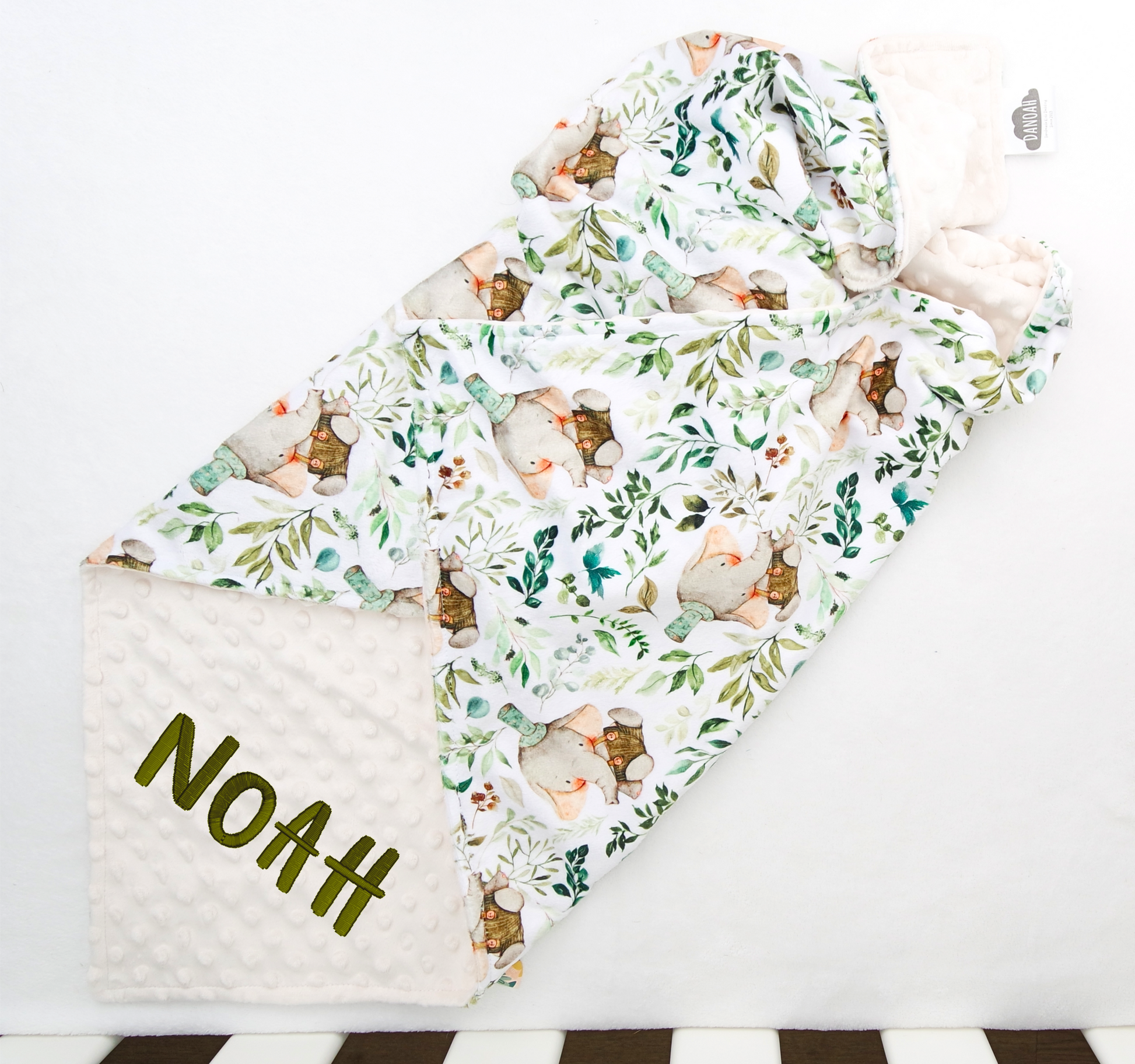 Embroidered Personalised Minky Dot Blanket - "George the Elephant"
