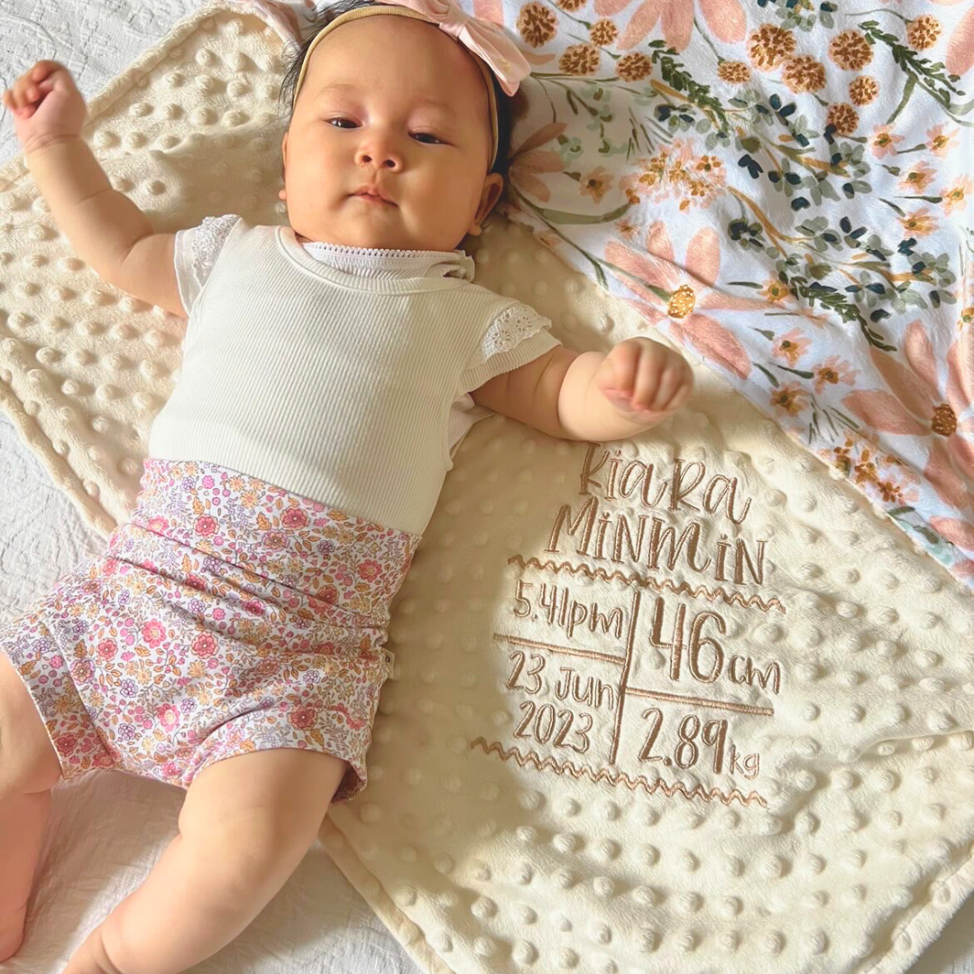 Embroidered Personalised Minky Dot Blanket - "Neutral Floral"