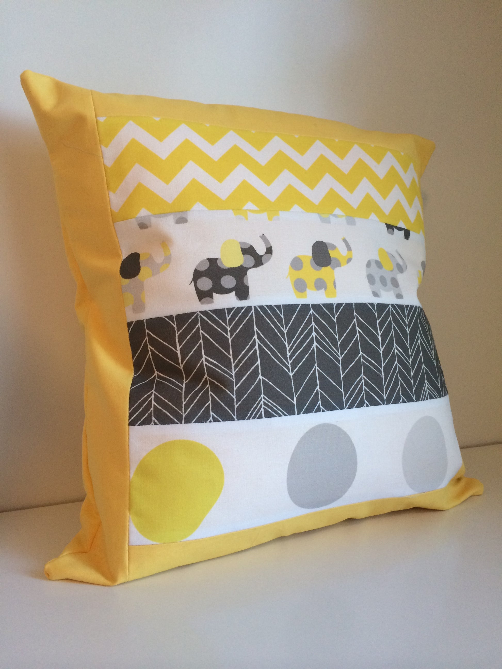 Yellow & Grey Elephant Patchwork Cushion Cover